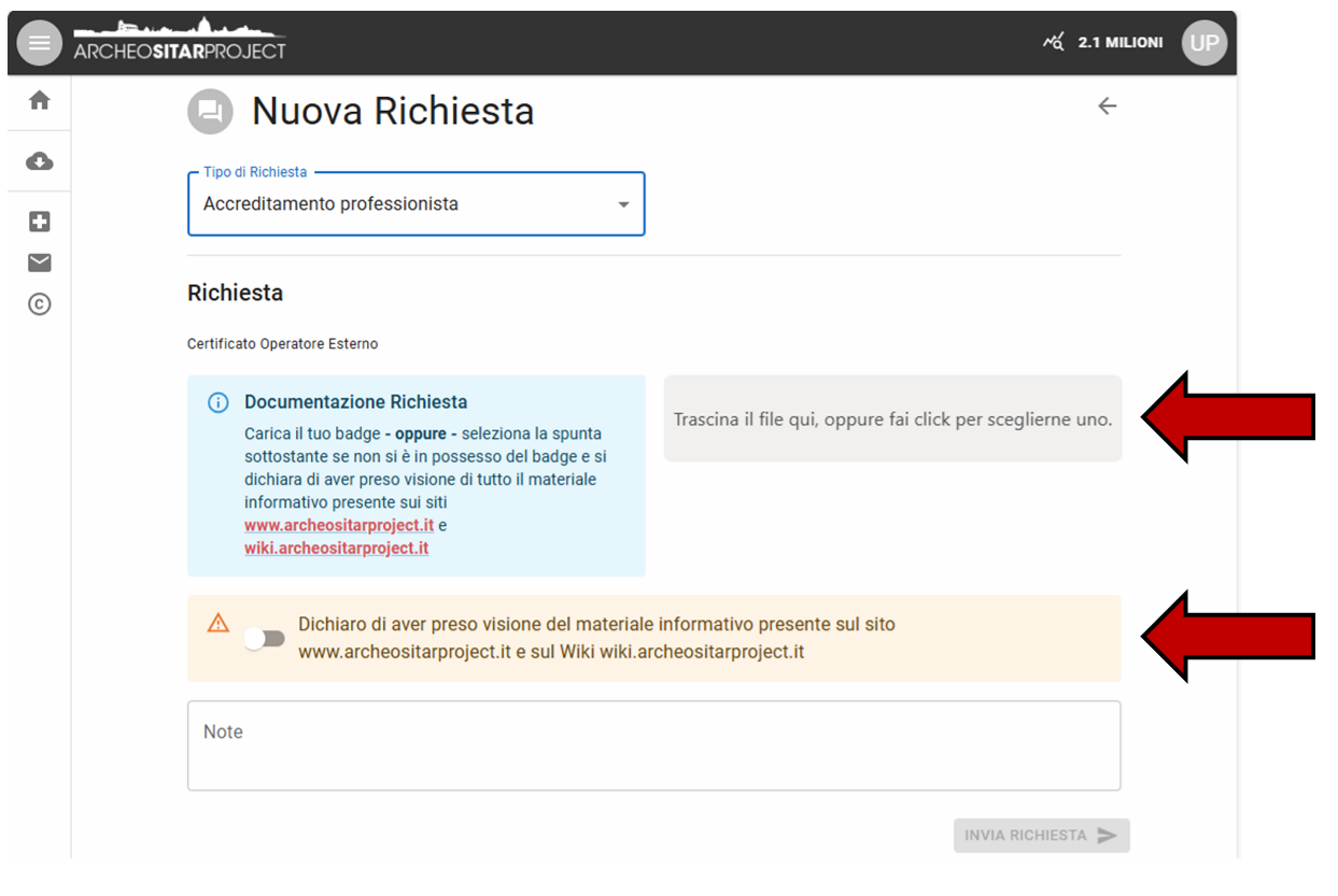 | Documentazione Richiesta | Caricare l'Open Badge ottenuto a seguito del Corso di formazione, erogato dalla Scuola Nazionale del Patrimonio e delle Attività Culturali tramite la piattaforma Dicolab. | Caricare il documento nel portale. |